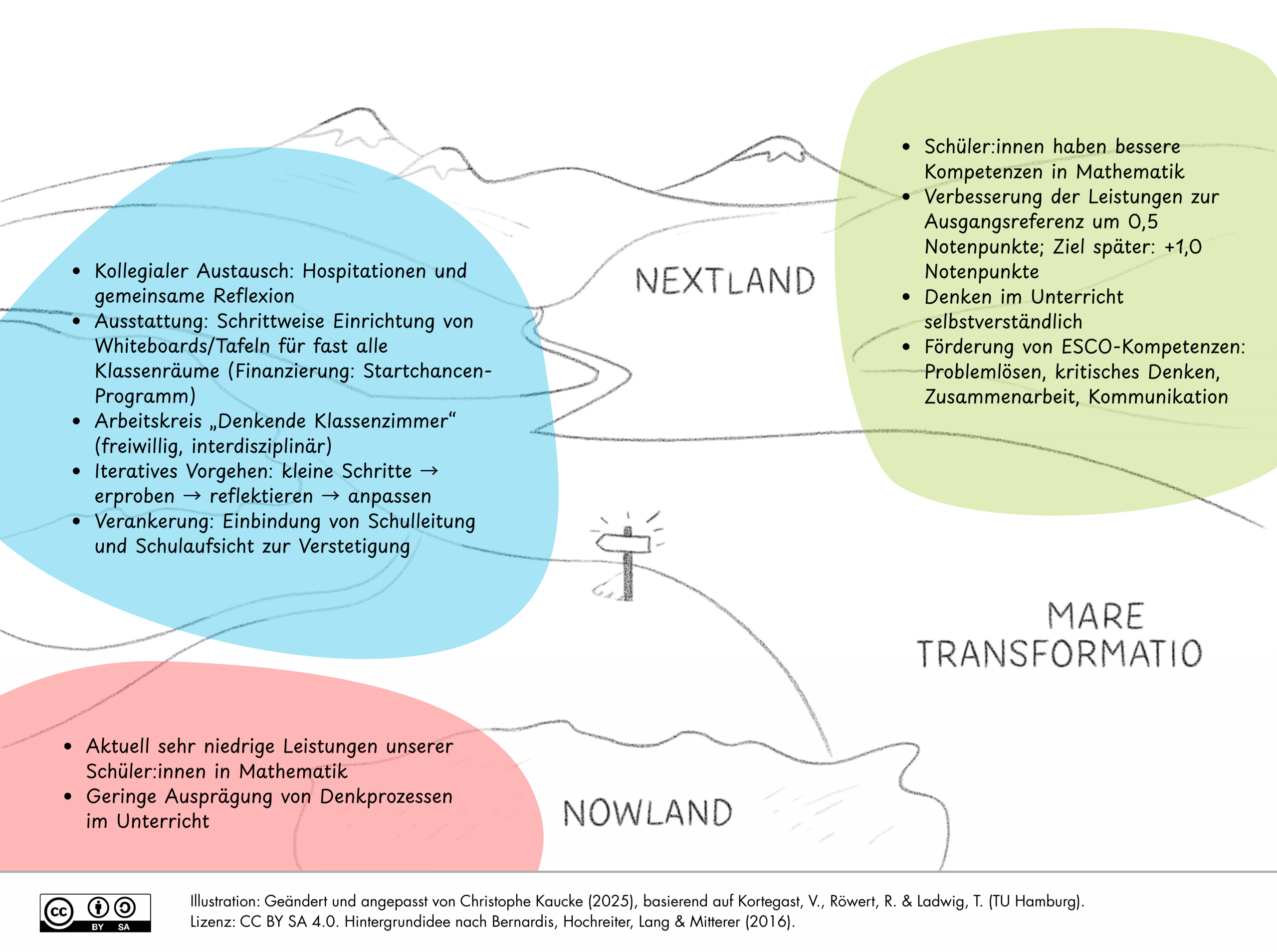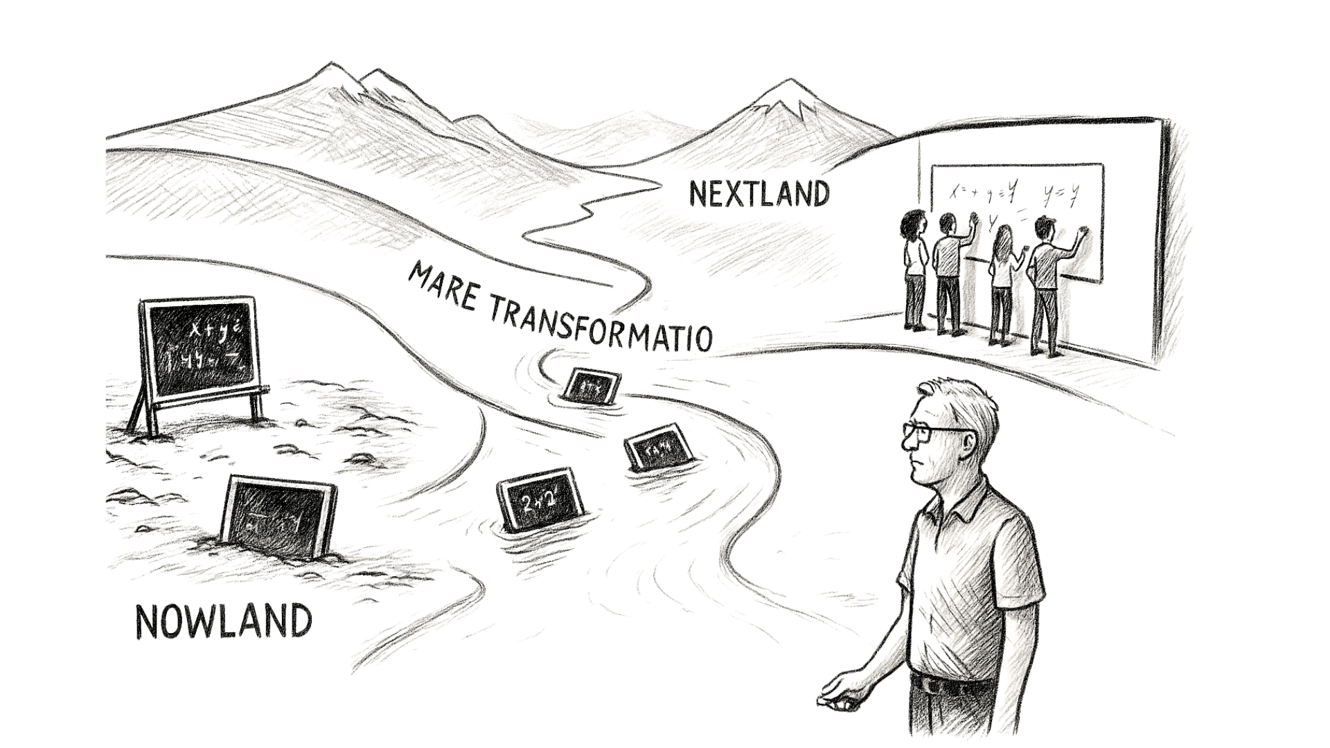 Parallel lief für mich eine DAPF-Fortbildung (TU Dortmund, Gesamtleitung: Martin Fugmann). Dort brachte Maik Zaborowski das Modell Nowland – Mare Transformatio – Nextland ins Spiel. Erst dachte ich: Beraterdeutsch. Dann merkte ich: das bin ich.