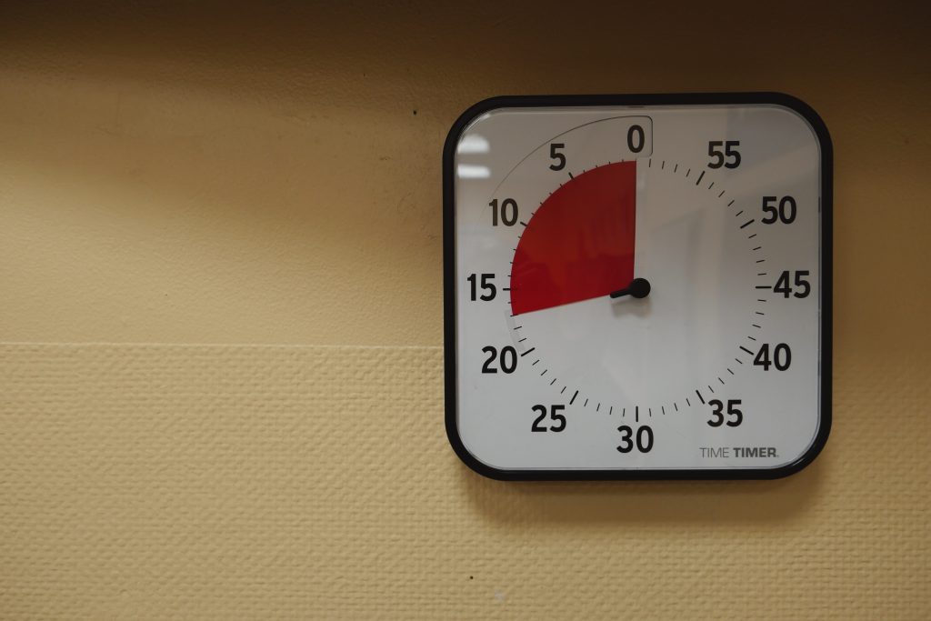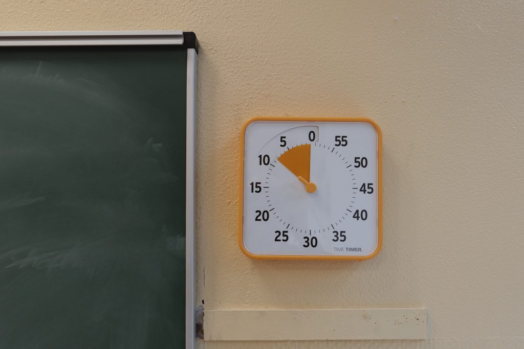 Große Timer an der Wand. Für alle sichtbar. Es gibt günstige Varianten, es gibt hochwertigere Modelle. Auch diese lassen sich – wenn möglich – über Programme wie Startchancen anschaffen. Entscheidend ist nicht das Modell, sondern die Sichtbarkeit.