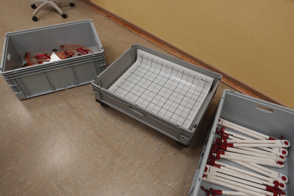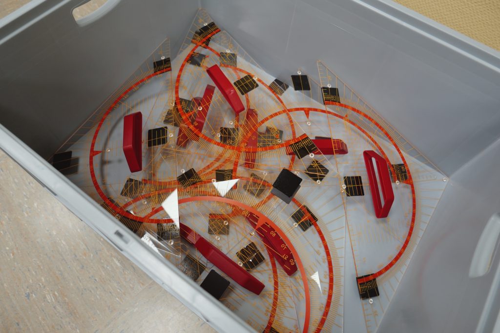 Manches davon ist simpel. Plastikhalter. Laminierte Zahlen. Klebestreifen. Manches ist größer. Rollwagen mit Geometriewerkzeug. Magnetische Koordinatensysteme. Modulare Eurokisten. Nicht alles ist billig. Nicht alles ist in fünf Minuten gebaut. Aber alles folgt derselben Logik: Reibung reduzieren. Fokus erhöhen. Diskussion erzwingen. Präzision ermöglichen.