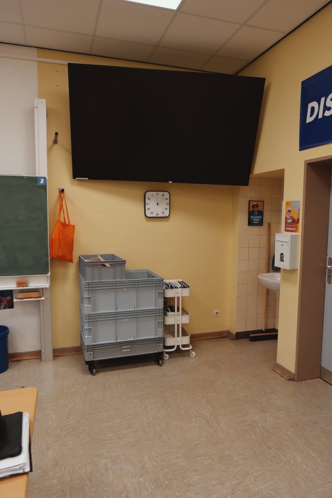 Das ist ein Pro-Tipp. Und ja, das ist kostenintensiver als ein Pack Kreidehalter. Wir haben vier dieser Wagen gebaut, jeweils einen pro Flur. So kann jede Kollegin, jeder Kollege sich das Ding einfach nehmen, wenn es gebraucht wird.
